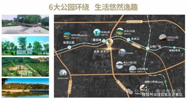 龙湖御湖境,位于光明区马田街道公明西环大道与健兴路交汇处西北侧,项目西北侧是去年入市的金地明峰府,西侧规划1所九年制60班公办学校,东南侧是署田埔龟山花园,南侧是科技园区,东侧当前是大片的城中村,6号地铁线“署田埔站”距离约300米。