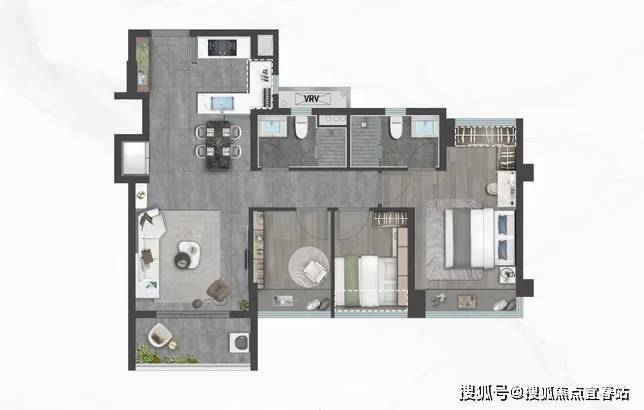 御雲:建面约80㎡三室两厅1.9卫,创新型1.9卫设计,臻享从容生活