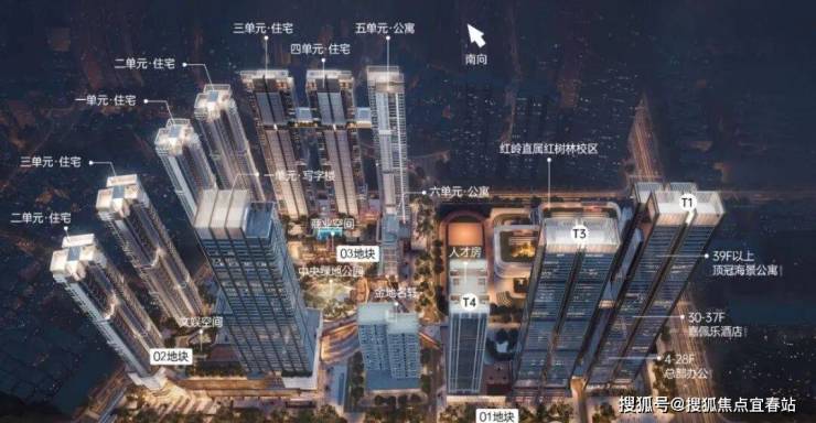 项目总占地约9.6万㎡,总建面约113万㎡,由四个地块组成,分为两期开发。01地块是写字楼+办公公寓+人才房+幼儿园;02地块是一栋写字楼+2栋住宅+8层商业体;03地块是4栋住宅+2栋公寓;04地块是在建中的红岭教育集团红树林校区。