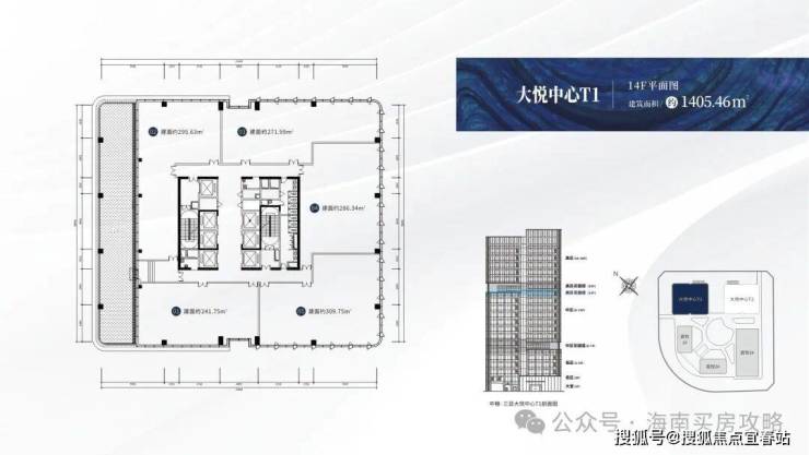 【楼栋概况】:🔍大悦中心T1,城市之光,高度88米,共20层,总建筑面积约3万㎡,在售户型建面约:267-316㎡,6梯6户,标准层高约4.2米。