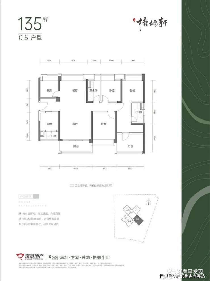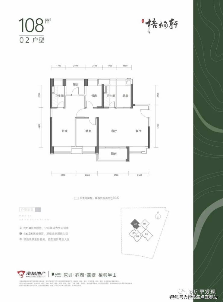 3、精著产品:打造为梧桐半山低密纯住区,约3.31低容积率,约1:1臻贵车位比,2梯5户舒适梯户比,全南朝向、全明采光设计,户型方正实用,高使用率。