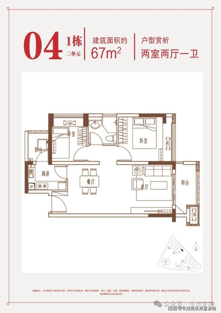 约67㎡两房:东南朝向,片区内唯一在售2房