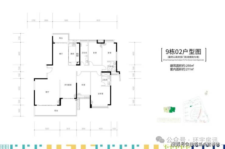 9栋建筑面积:255-259㎡,2-24层、两梯两户