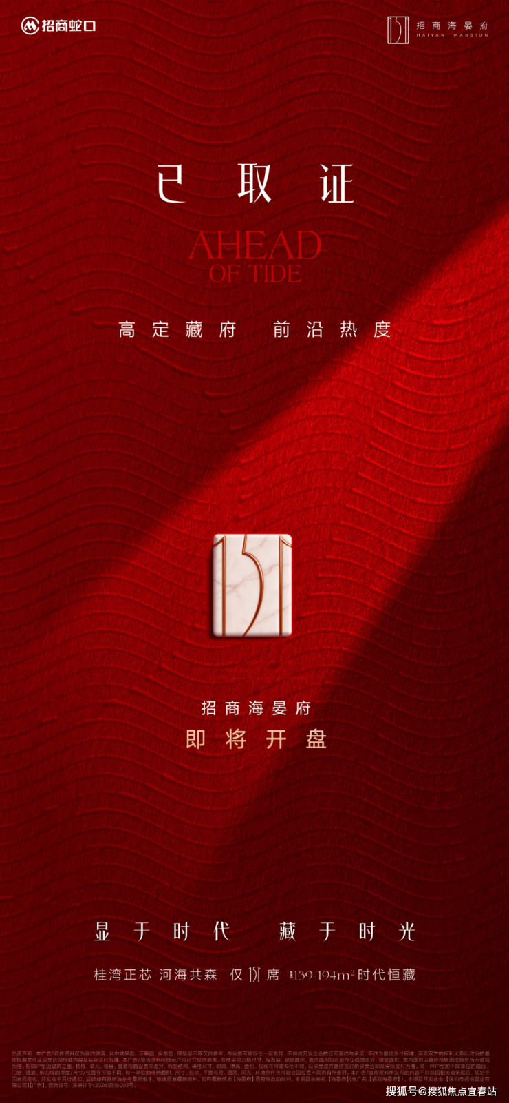 去年7月14日招商以21.55亿拿下的前海单价地王【招商海晏府】已经正式开放展厅样板房,看房验资500万,目前已经取证,总共151套,本次推出2-3栋108套139-176-194㎡新国标4-5房。