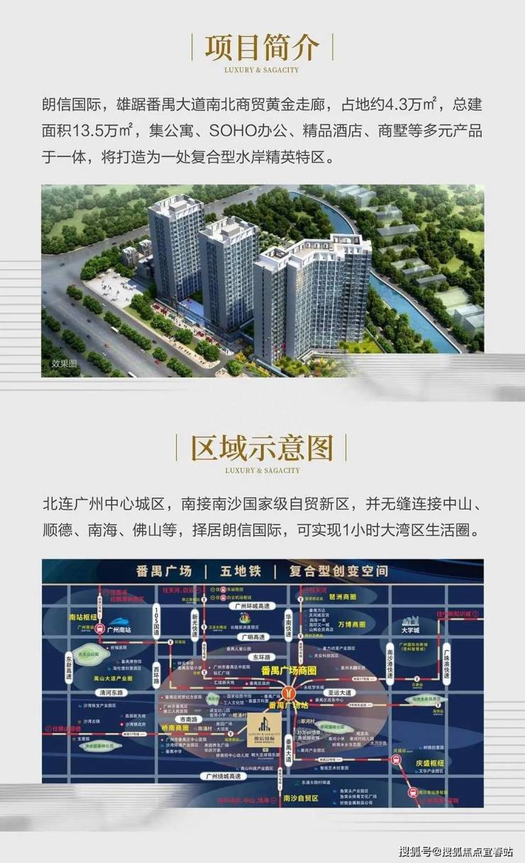 朗信国际位于城市中轴番禺大道北路上,连接番禺与南沙自贸区的门户位置。