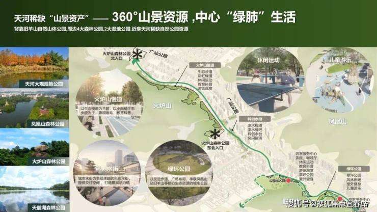 火炉山森林公园、凤凰山森林公园、天麓湖森林公园,引山入园,山园相容,打造广府自然家。