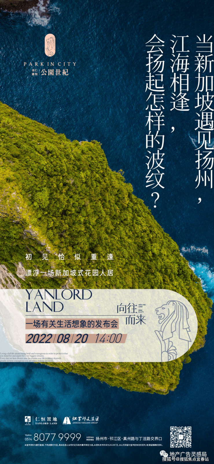 在视觉设计的首阶段,我们将扬州城市映记与新加坡鱼尾狮IP进行糅合,为仁恒与扬州的首次际会,打造国际化肌底之上的全新结合。