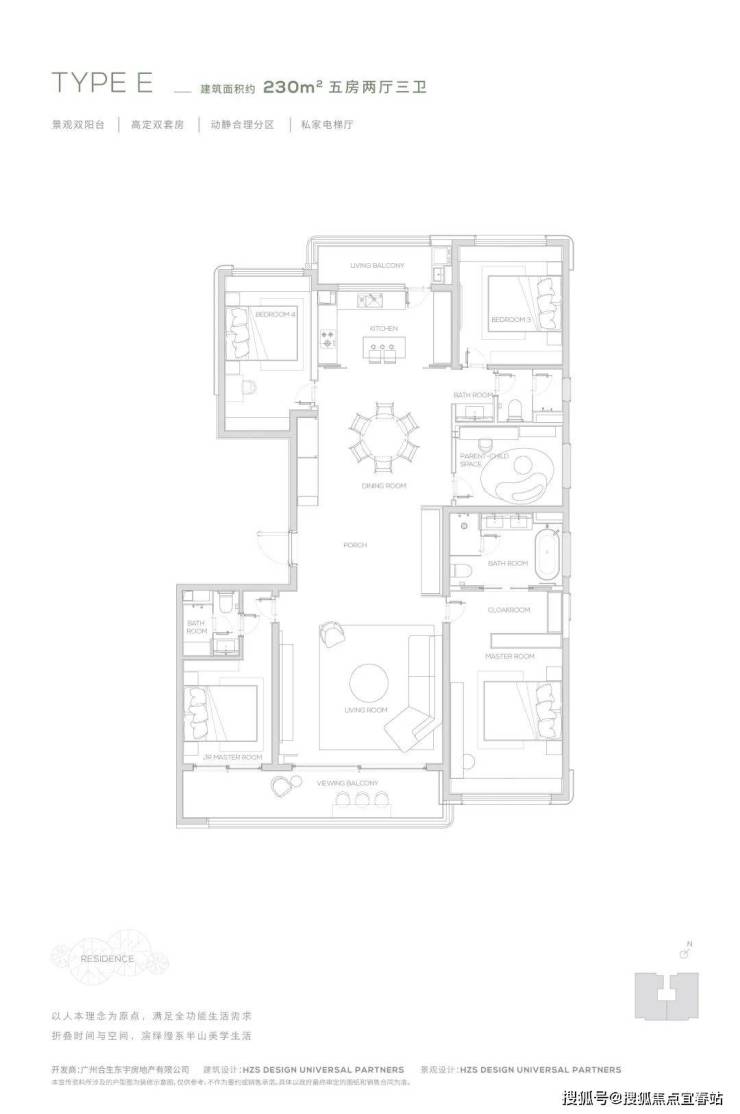 【230㎡户型】观景双阳台-高定双套间-私家电梯厅-双洄游动线