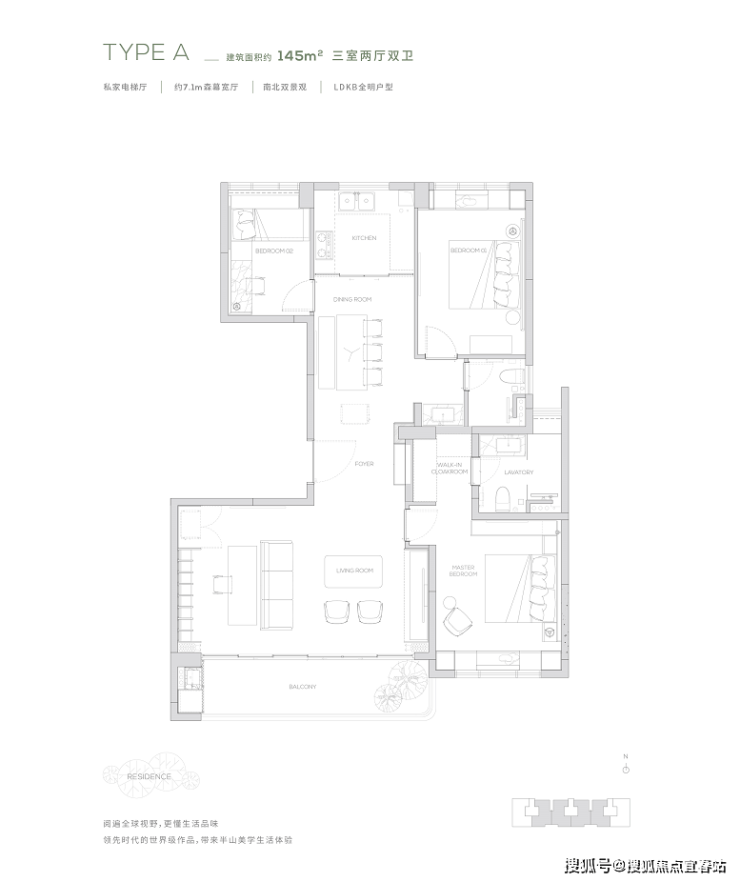 【145㎡户型】独享私家电梯厅-约7.1m²森幕宽厅-LDKB全明户型