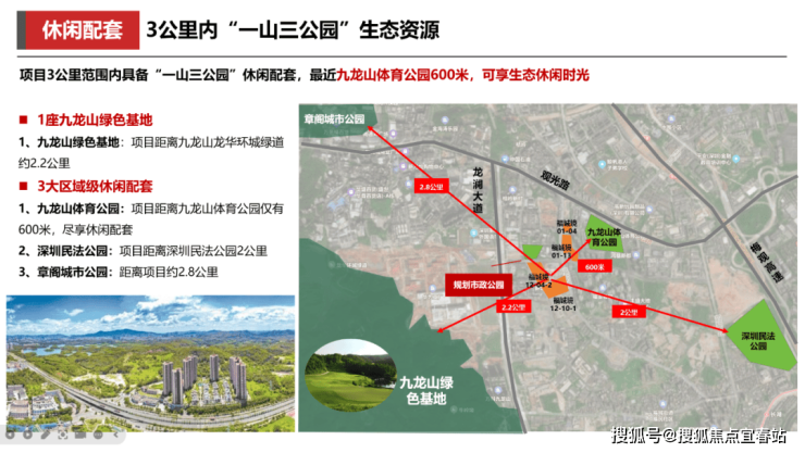 公园及城市配套:项目600米内有九龙山体育公园,内有公园足球场,游泳馆,九龙山龙华环城绿道距离约2.2公里,民法公园距离约2公里,周边3.9公里范围内还有鹭湖四馆,是龙华最大的文化建筑群。