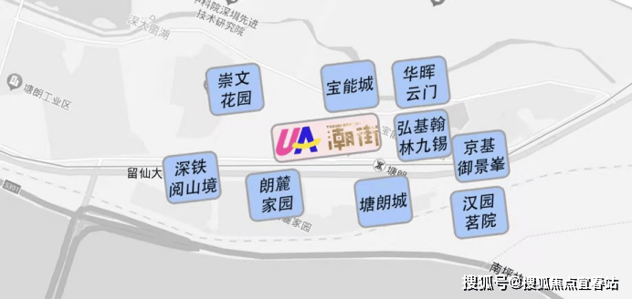 500米内汇聚宝能城(2705户)、朗麓家园(3825户)、崇文花园(4395户)、深铁阅山境(1623户)、塘朗城(1822户)、华晖云门(1104户)、弘基翰林九锡(600户)等7个高阶住区,约 16074户家庭,高净值人群约6.4万人(以每户4名家庭成员计算)。