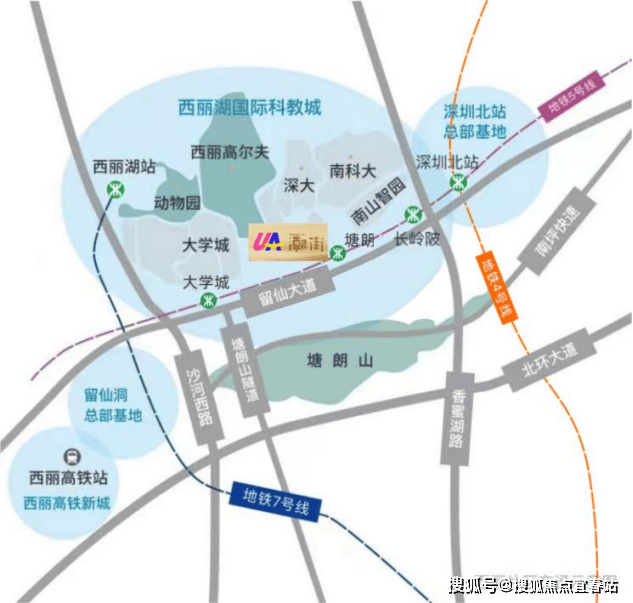 西丽交通枢纽,作为深圳交通网络的重要组成部分,西丽高铁新城拥有13台25线的规模,超越深圳北站(深圳北站作为日均客流量高达14.9万人),成为新的交通标杆项目。项目紧邻地铁5号线塘朗站,4/5/7号线3轨环绕,毗邻“三纵五横”主干道,瞬息通达全城,占据全城双TOD中轴-西丽高铁枢纽与深圳北站枢纽,为人流提供了世界级支持。