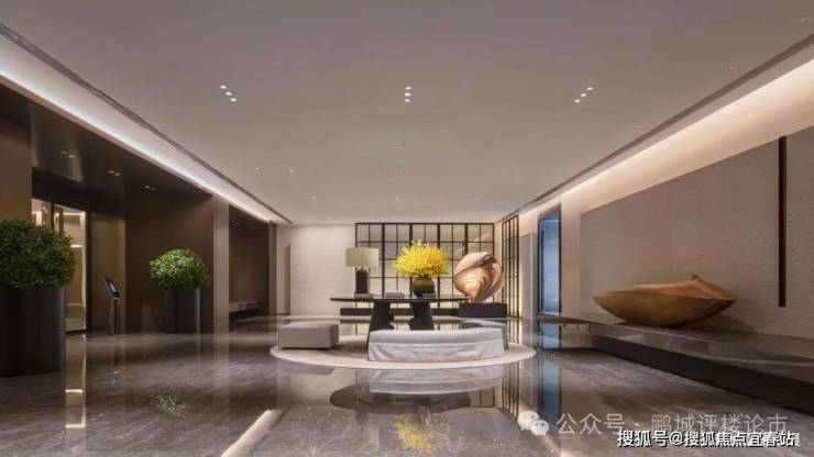 入户大堂以顶奢酒店为标准,打造开阔轩敞的归家大堂。石材铺陈,艺术点缀,以三重礼序,迎接每一位归家者。