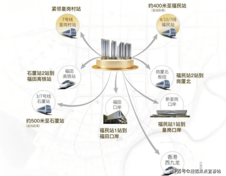 项目周边,汇聚着2地铁口+4地铁线,·1站双口岸 ·2站就可以到亚洲最大的地下火车站福田高铁站·2-3站可达国内最大轨道交通单体工程岗厦北枢纽。道路方面有主干道滨河大道、粤港澳高速等,驾车出行前往南山、罗湖、龙华等地,也是非常便捷。立体交通 畅行湾区 双地铁口 四地铁线 速抵大湾区全域,从容往来深港双城,畅享高效人生。