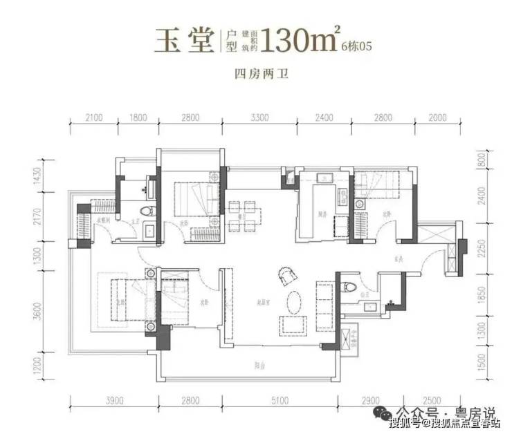 四开间IMAX光幕引景入室,以LDKB家庭聚场升温情感,更以双转角主卧套房,礼献一方休憩殿堂。• 玉堂·建面约130㎡4房2厅2卫:南向四开间,约14.7米IMAX光幕,尺度自成