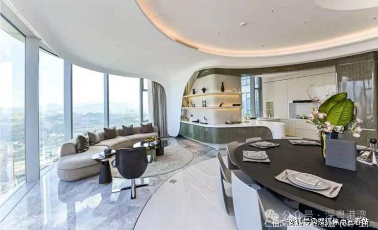 方胜纹双核心筒的设计使得整栋建筑更加高效和私密,并实现了双专梯电梯入户,为塔尖人群高效的工作和私密的生活而服务。转角处曲线设计,拓宽了整个建筑界面,使得建筑拥有270°转角无柱开放式观景视野。是塔尖人群拥揽深港的极佳观景台,足以盛放您帷幄城市的雄心。