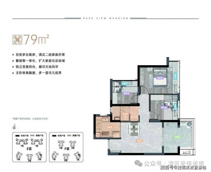 所有户型均为全屋飘窗,主卧配置转角飘窗,270°全方位采光,城市、公园、园林美景尽收眼底。