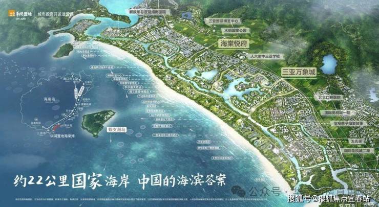 三亚海棠湾被定位为“国家海岸”,作为世界级的旅游度假区和度假天堂,承载国家热带滨海旅游品牌形象。规划"一点·一带·三区",约22公里黄金海岸线坐拥千亿级的娱乐、休闲、康养、购物、教育等资源配套。