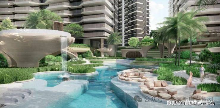 ◆活力之泉:以亚特兰蒂斯为灵感,打造约5000平的超体量下沉庭院。整个活力之泉由亲子水域、层叠泳池、叠瀑水景,以及多层次立体绿化构成,融汇近20个多功能泳池节点,足不出园即享水岸度假时光。