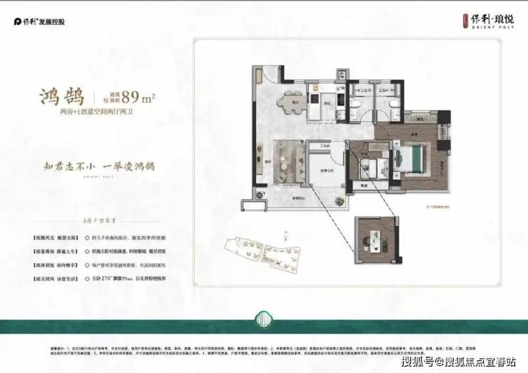 智慧户型堪称 “空间魔术师”,例如 89㎡的 3 房 2 卫户型四开间朝南,南向阳台近 5.8 米长,主卧南北对流,且户型新规后产品赠送面积变多,得房率近 100%。