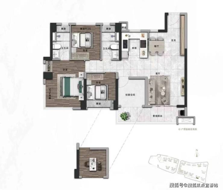 100㎡户型是89㎡的升级版,增加了一个房间,满足更多年轻家庭的改善愿望。