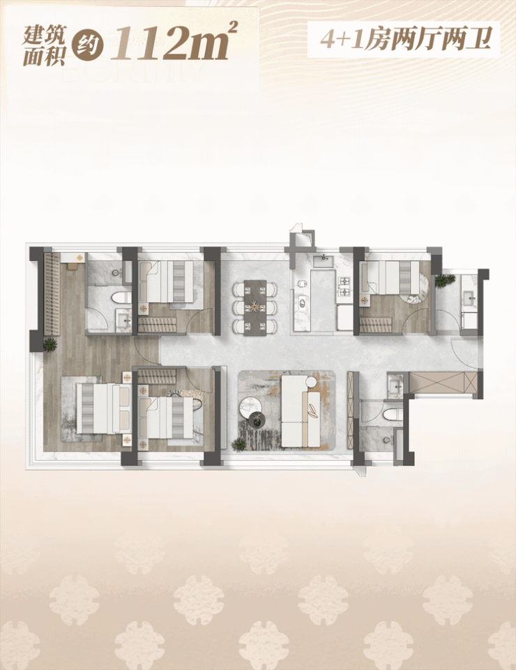 户型面积:建筑面积约99/114㎡ (新规产品,相当于传统建筑面积约120-150㎡户型)