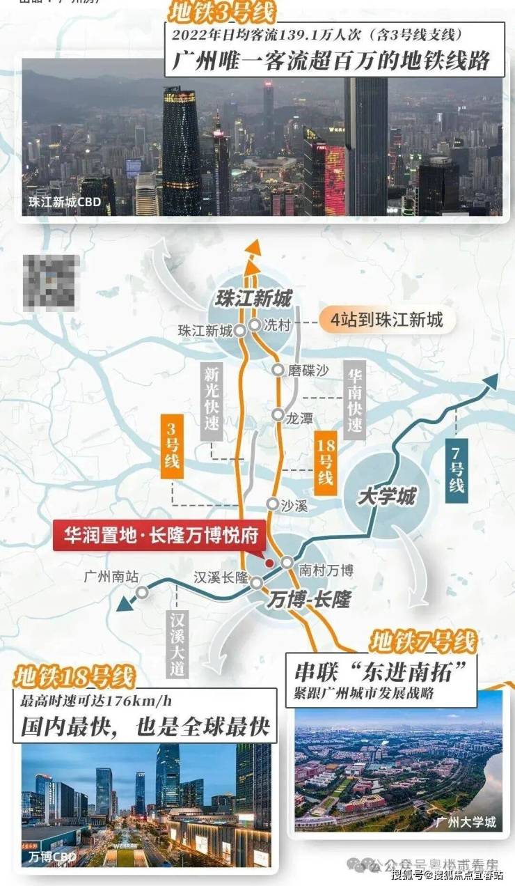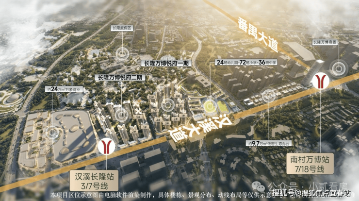 地铁:紧邻地铁3号线、7号线汉溪长隆站(步行约8分钟),距离18号线南村万博站1.2公里。