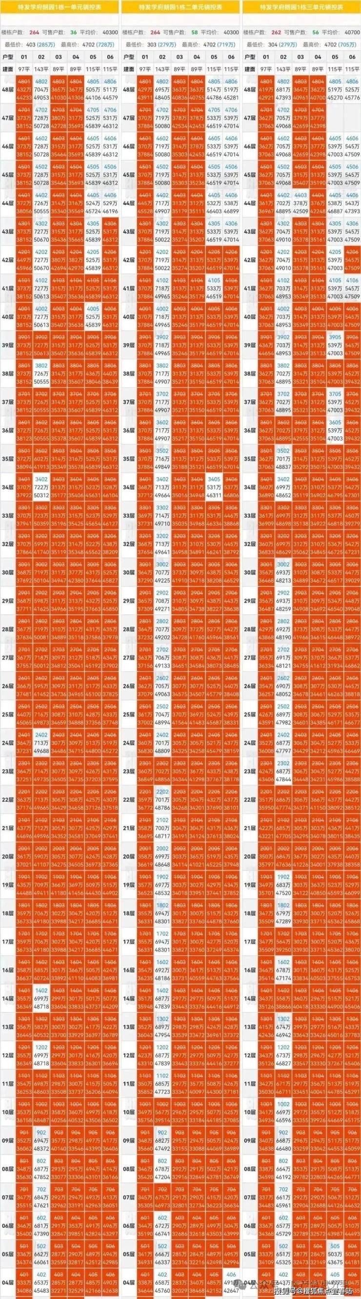 楼层高:1栋1/2/3单元48层
