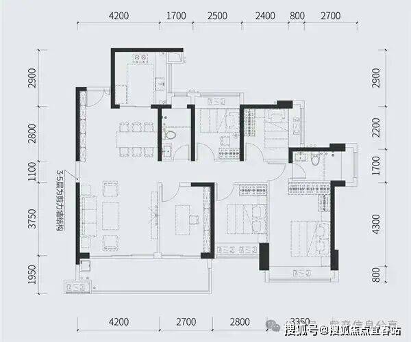 114㎡的4房2厅2卫,设计的竖厅格局,客厅3.7米开间,四开间朝南,4个卧室分别是3.1米/2.7米/2.6米/2.45米的宽度,客厅连接卧室带6.3米长大阳台,U型厨房,房,得房率:77.74%(不含赠送),有西南或东南朝向。