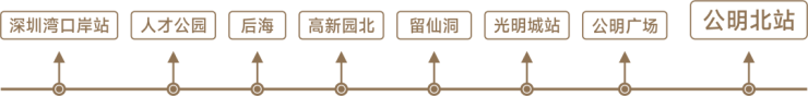 项目距13号线二期(北延)公明北站直线距离约200米,4站达公明广场,可换乘6号线通达宝安/光明/龙华/罗湖/福田