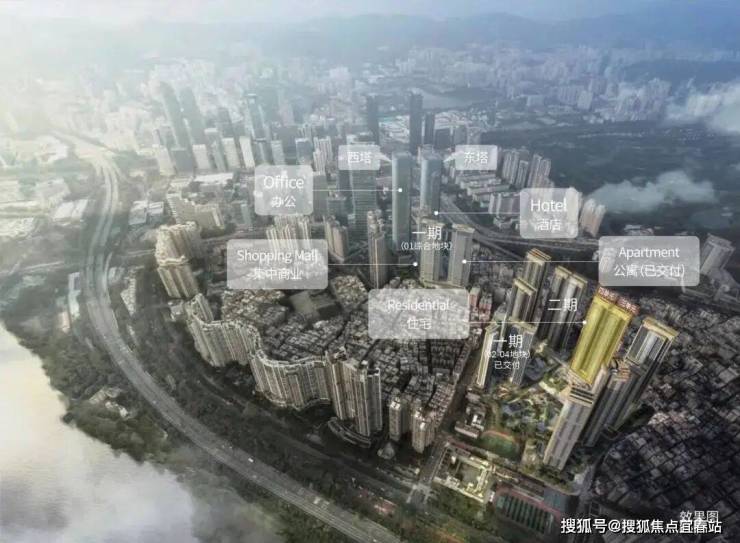 一二期建面约126万㎡全系业态滨海综合体,涵盖超甲级写字楼、高端酒店、精品公寓、海幕住宅、购物中心、公园式街区多种业态。目前一期住宅公寓已售罄入伙,写字楼已招商运营(入驻企业包括:平安产险、海通证券、浙商银行、VFS Global等国内外知名企业),城际酒店Intercity Hotel已开业,一期约8万㎡商业已开业,40%的品牌都是首次进入深圳或者华南地区,华南区首家茑屋书店、寰映IMAX未来概念店,华南区首家teamLab未来游乐园等。