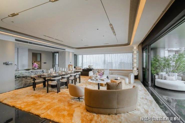 室内全屋则高配3.25m层高,一体化布局的客餐厅空间特别打造了270°环幕转角宽厅与半开放式中西U型双厨,空间更显奢阔,定制层峯圈层社交主场。