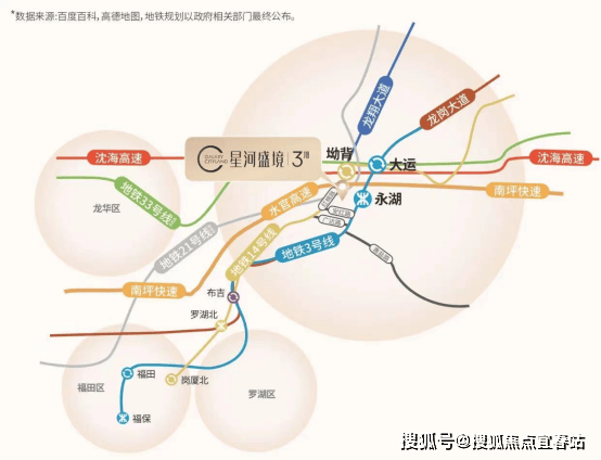 21号线(规划中)∣坳背站,4 站坂田,8 站南山。