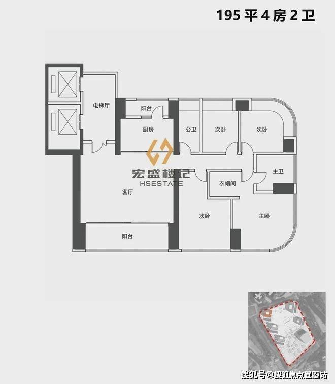 1C栋4梯3户,共84套均为195㎡4房2卫,总高192.42M,总高54F