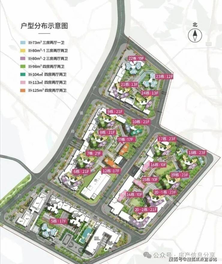 2号地块:6/7/8/9/10栋商品房21F,11/12栋商品房17F,13栋是幼儿园。