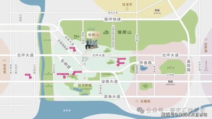• 深圳唯一亲山地铁口物业,距离7号线深云站约150米,环绕两纵南坪、侨城东北延两横,北环大道、侨香路城市主干道,15分钟都市出行圈,快速抵达南山科技园、福田CBD、后海、深圳湾等,项目旁边还有龙云路东延道路段(规划),直接连通南山。