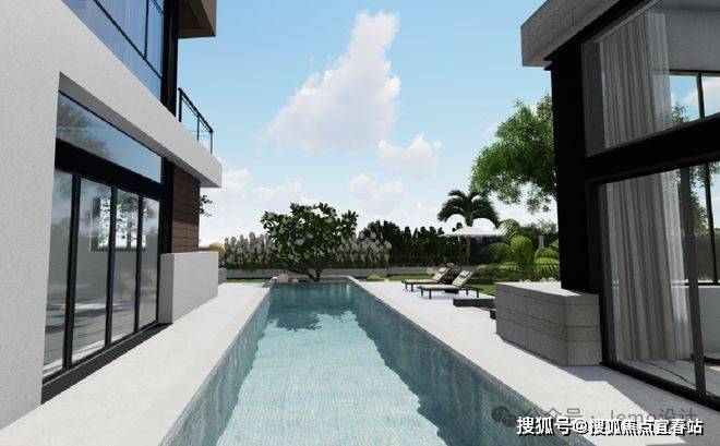 In order to achieve intimate interaction between humans and nature, a hardened area was enlarged on one side of the swimming pool, forming an indoor outdoor interaction. The high and low scattered broad-leaved plants, with clean and simple shapes and distinct layers, become an interesting part of the courtyard, making people feel like they are in a tropical rainforest.