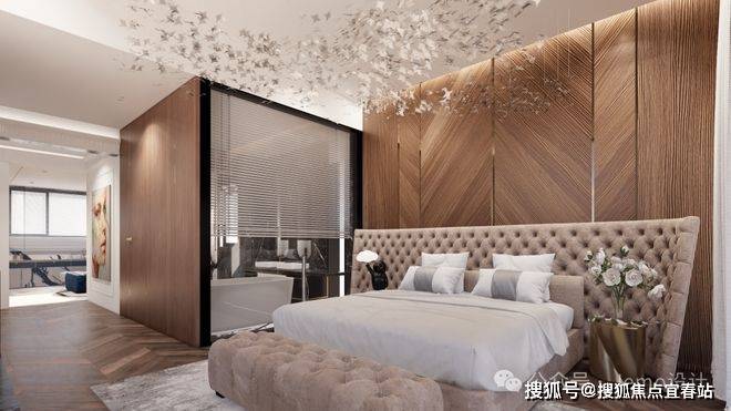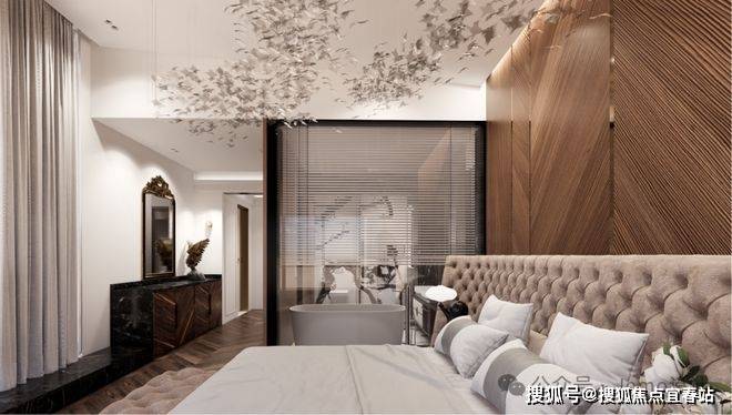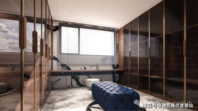 In the room, a glass partition was installed in the bathroom to maximize the sense of scale in the space; The glass cabinet door in the cloakroom, paired with metal handles, exudes an Italian sense of luxury. Paired with carefully selected bedding, curtains, sofas, and a series of soft furnishings, create a comfortable resting environment.