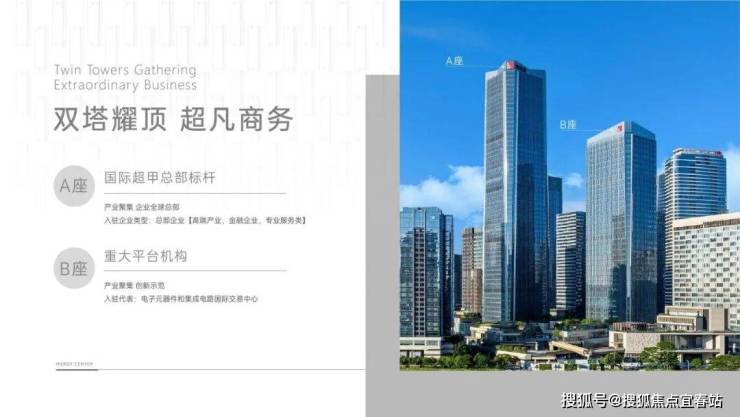 总建筑面积超52万㎡,由2栋超甲级写字楼、1栋奢华五星级酒店、壹方汇高端体验式商业,以及2栋稀缺海景公寓组成。其中2栋超甲写字楼,A座定位为总部标杆。