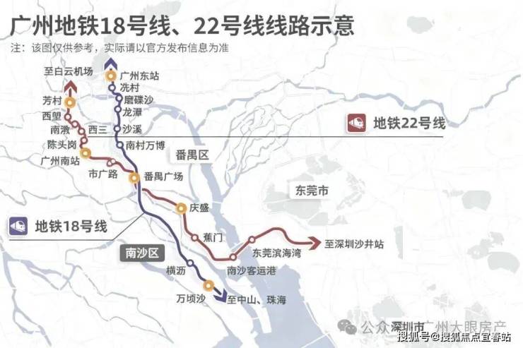 其中,22号线,时速高达160公里,能通达广州南站、白鹅潭商圈、白云机场、番禺广场等核心区域,且能一站换乘18号线。