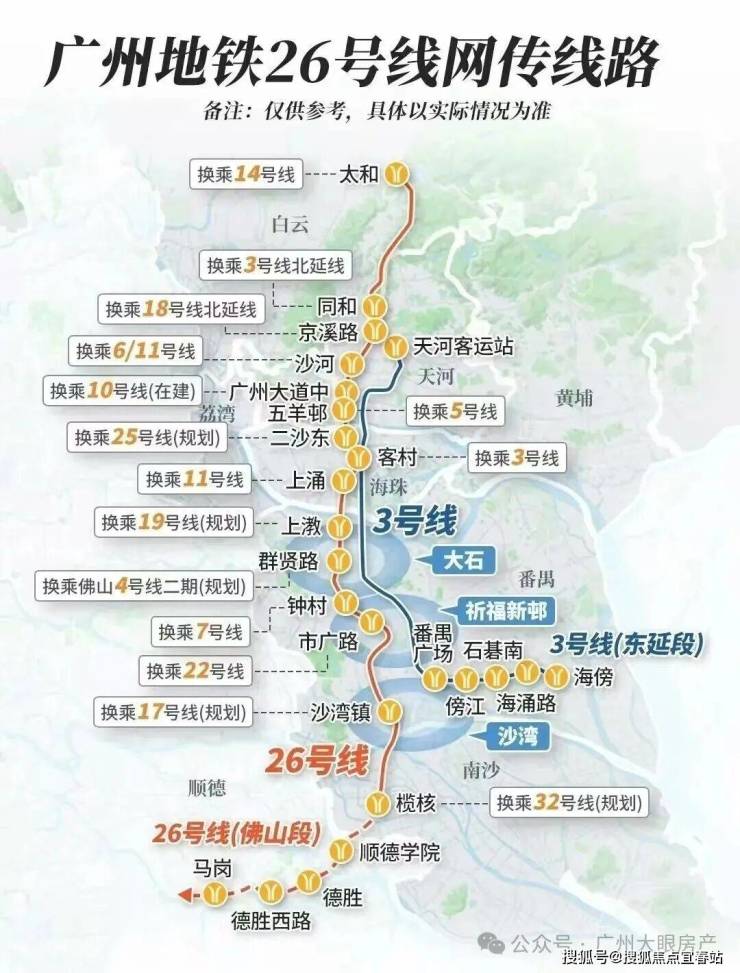 26号线相当于3号线的姐妹线,同时换乘站点极多。从这条线出发,可以快速通达体育系、珠江新城、琶洲、金融城、杨箕、二沙岛等核心产业和商圈带。