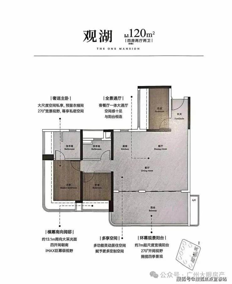 · 环幕双景阳台,约5.8m阔尺阳台,270°环幕视野
