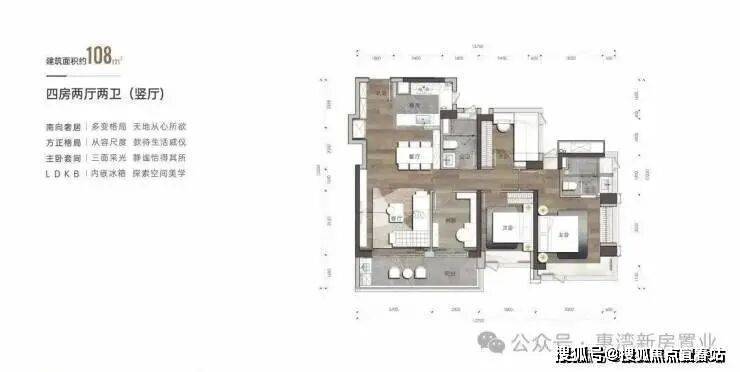 建筑面积约108㎡户型-4房2卫(竖厅)