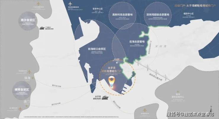 太子湾,是招商蛇口保留的最优地块之一,斥资3000亿打造,联袂全球大师,以170万㎡筑就航母级国际滨海城,一如悉尼地标Darling Harbour,代言城市繁华名片。整个片区规划了70万m²的高端商务集群,其中一栋382米超甲级写字楼将成为新地标。片区还规划有超五星级酒店、旗舰商业、多所国际学校、国际医院等,几乎包含一座城市的所有功能。