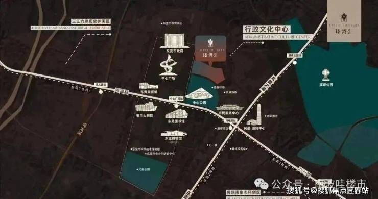 瑧湾汇位于广发南市政府旁,与市政府为邻,位于东莞山水文化轴和时代发展轴交汇处。项目周边涵盖中心广场、市民中心、康帝酒店、汇一城、国贸城、图书馆、市政公园等城市配套。