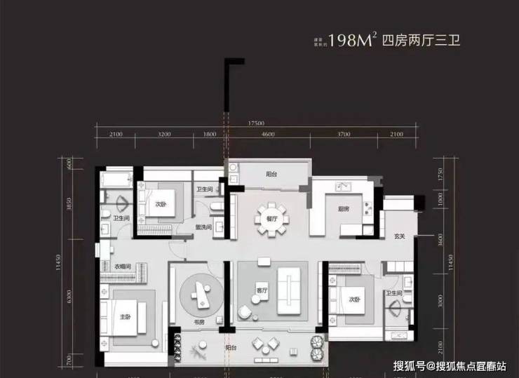 建面约198㎡奢宽四房: