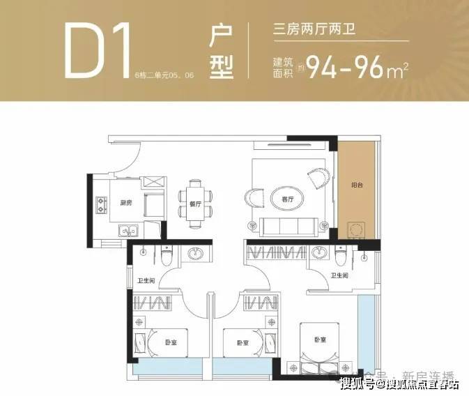 94平:3房2厅2卫,西南/东南/正西,套内使用率73.52%(不包含赠送)