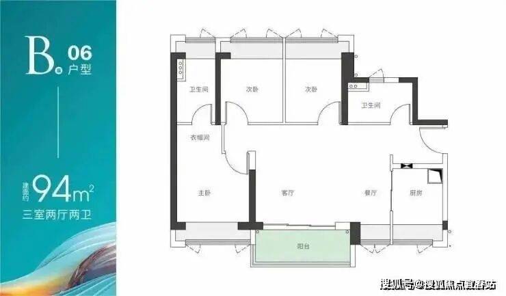 B座06户型-建面约94m² 三房两厅两卫