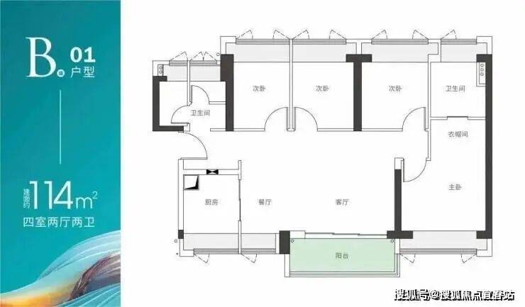 B座01户型-建面约114m² 四房两厅两卫