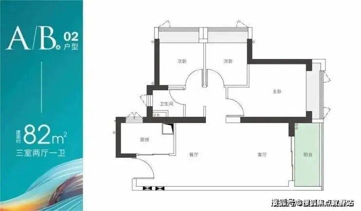 A/B座02户型-建面约82m² 三房两厅一卫